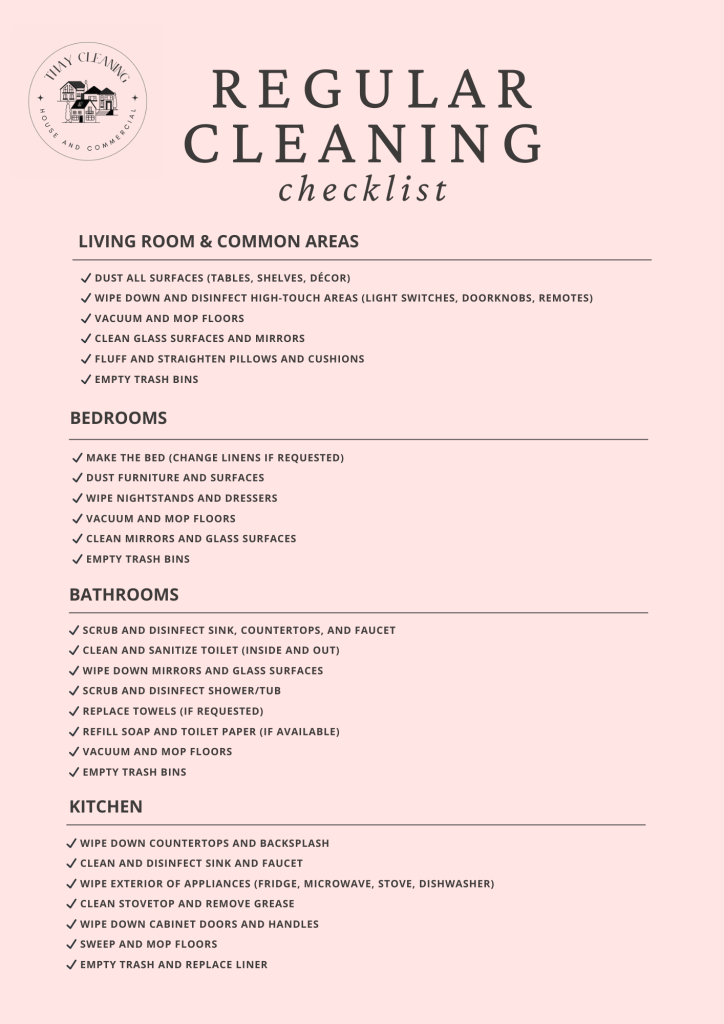 Here’s the checklist of our Regular Cleaning Service: